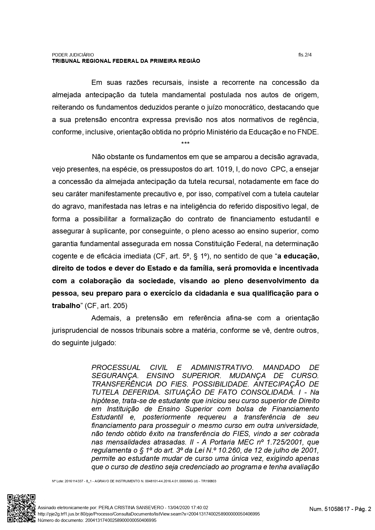 Portanto, por qualquer ângulo que se analise a questão de direito posta à baila, não se mostra razoável que a estudante seja impedida de realizar sua transferência entre cursos, seja na mesma instituição de ensino, ou mesmo entre instituições de ensino diferentes, e renovar o contrato através do aditamento do financiamento estudantil, por entraves formais ou burocráticos ou ainda pela eventual falha no sistema SisFIES .